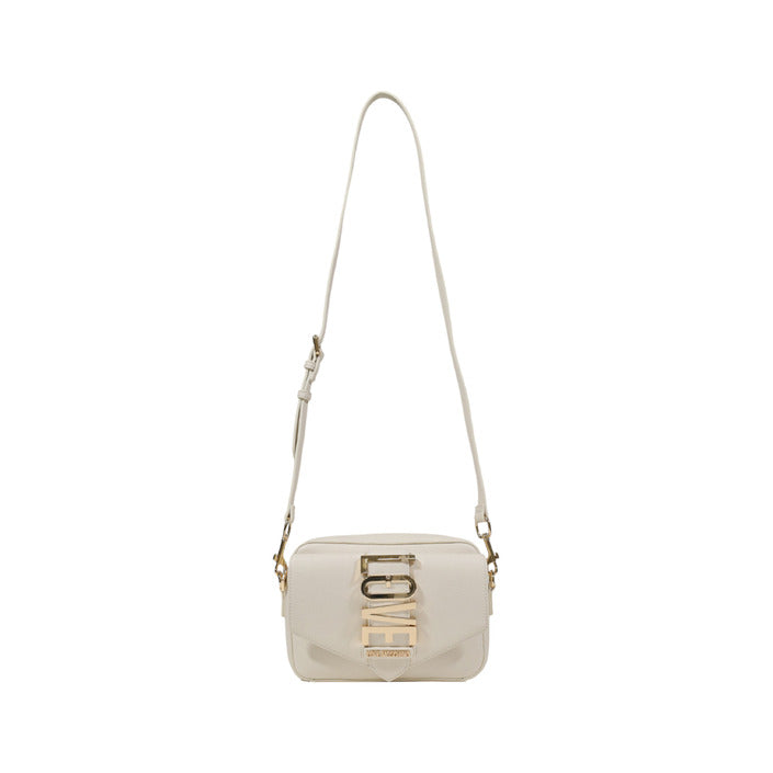 Stay stylish with this white shoulder bag by Love Moschino, featuring a bold gold front logo and secure zip closure.